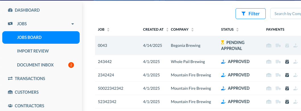 - Locate the target job in the list. Use the Search field or the Filters to find a specific job. (Please see See and use list of jobs for more details on using filters and search.)