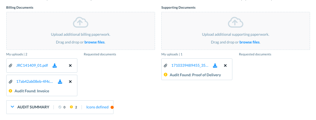 There are two sections—Billing Documents, and Supporting Documents. Click on Browse Files in either section, and upload the document.
