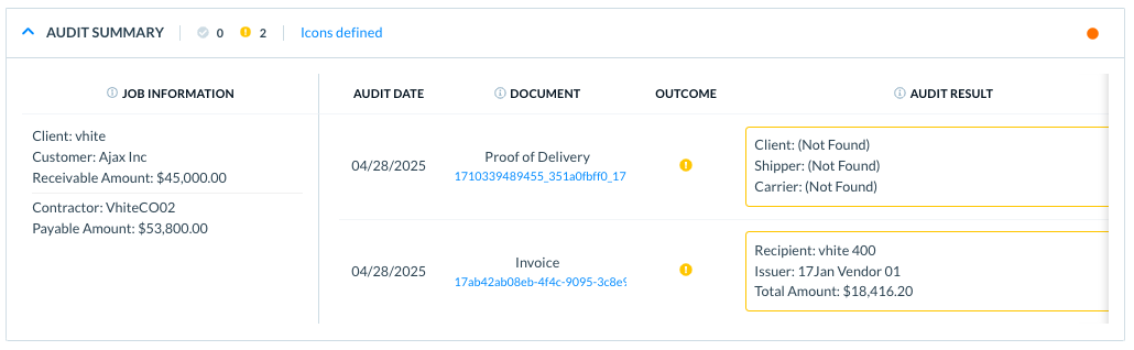 Click on Audit Summary and the section expands to show you the audit status of each document.