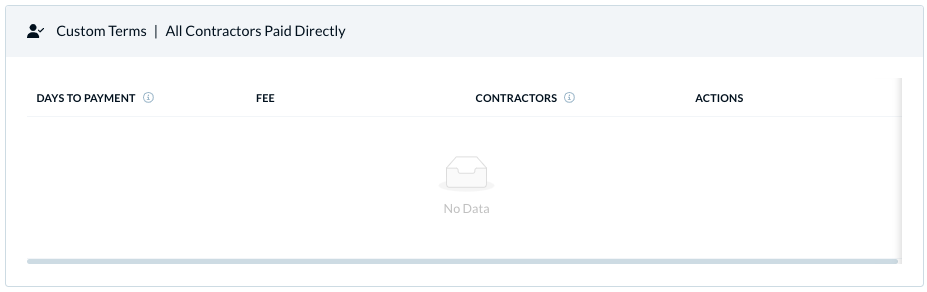 Define the custom terms for the contractors—a different fee for different days-to-pay settings. These apply to all the contractors by default.