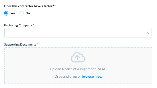 - Set up contractor payment settings via Factor Assignment