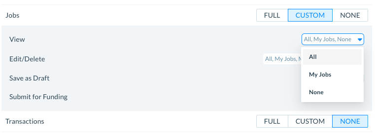 - My Jobs: Gives permissions to see and manage their own jobs only.