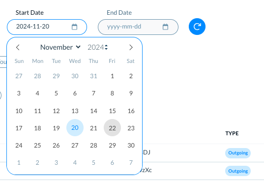 In Start Date and End Date, select the range of two dates to see transactions only between these two dates.