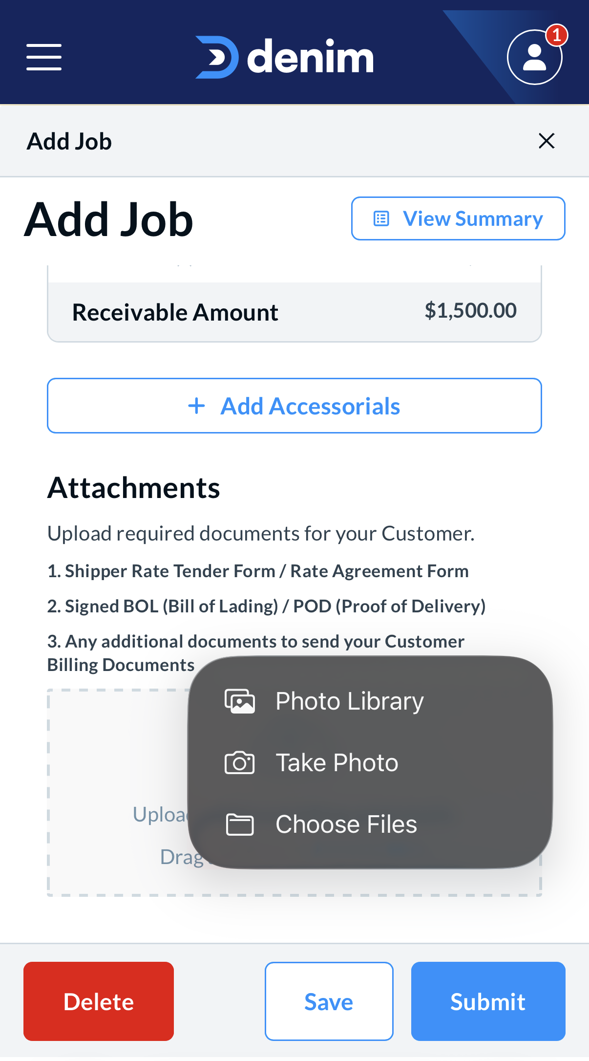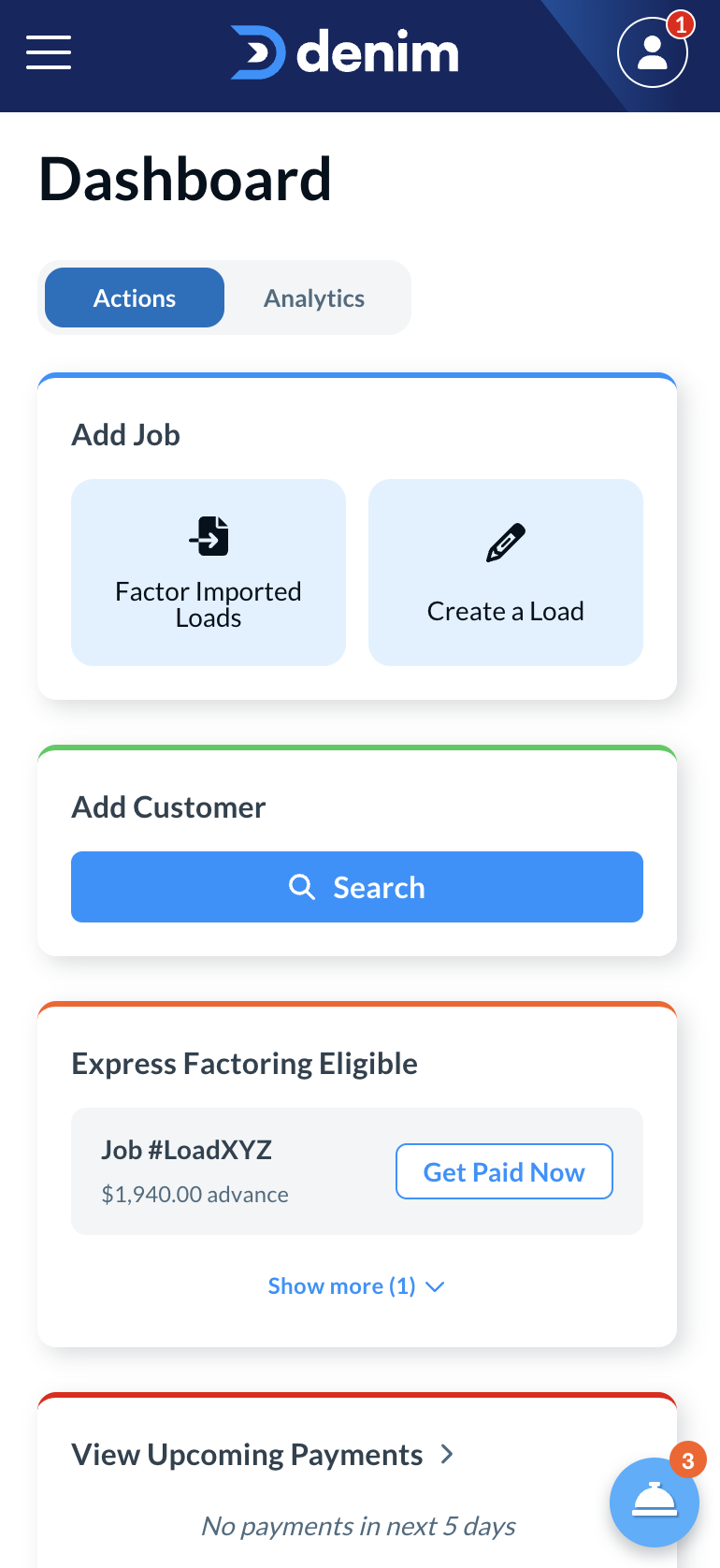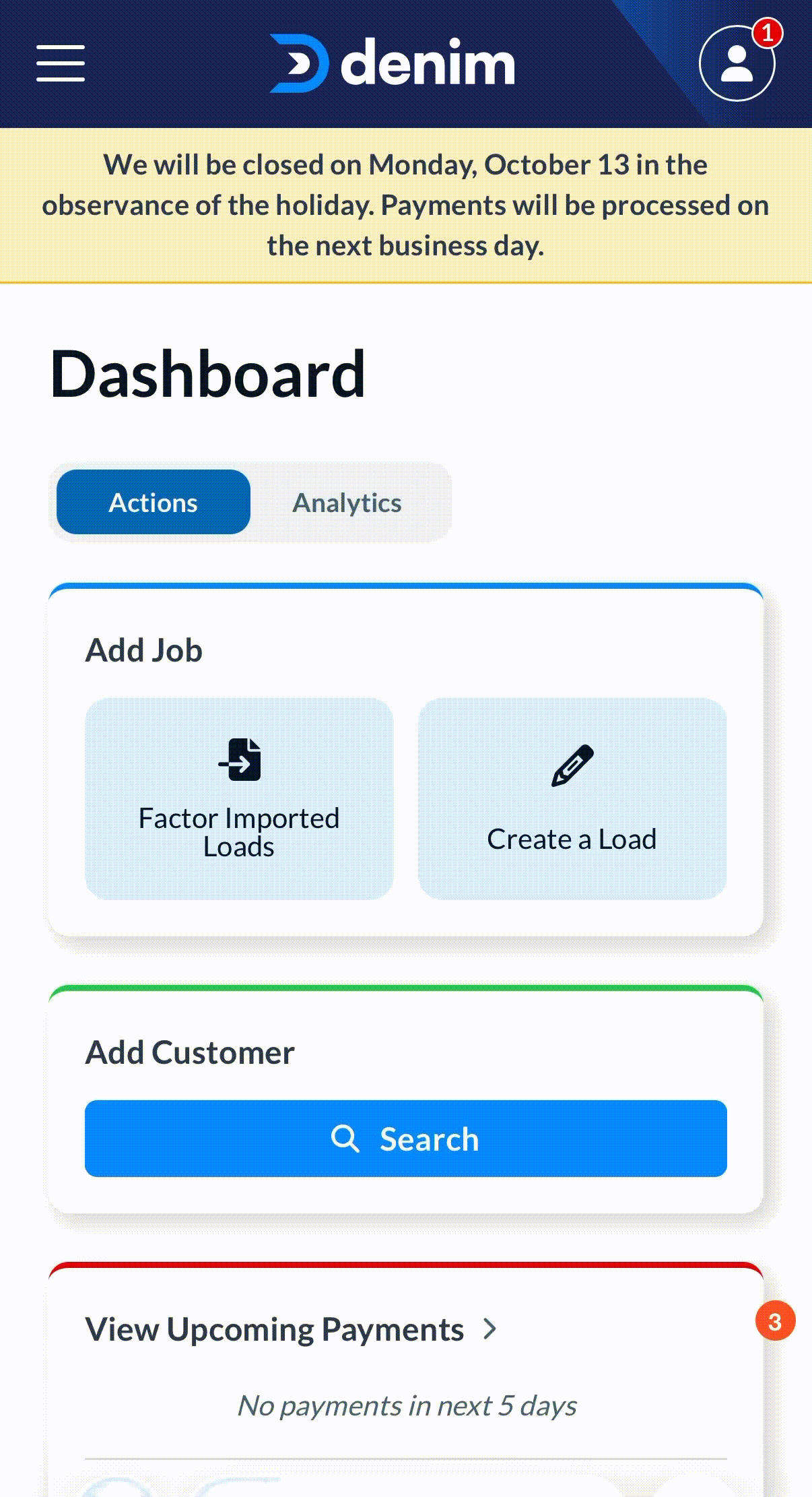 Factoring a load with Denim is incredibly easy. All you need to do is log in, and select the "Create a Load" button: