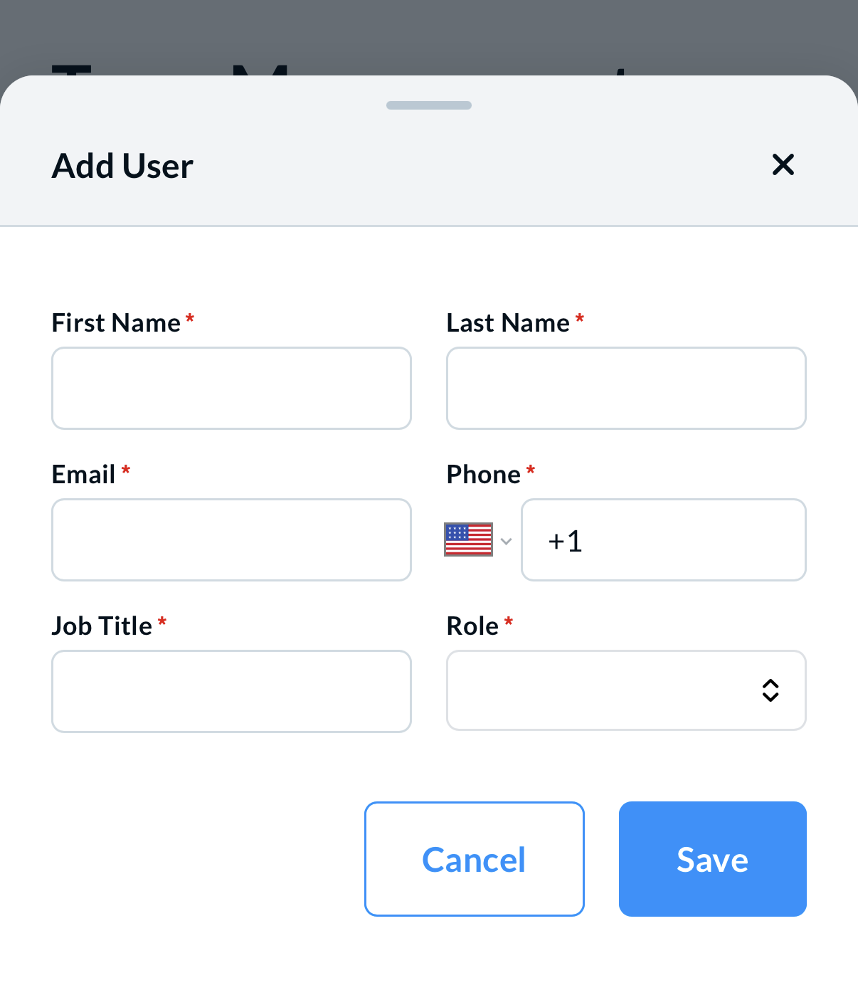 From there, head over to your "Team Management" tab, where you'll be able to invite each new user to Denim. Provide their name, contact information, job title, and assign them an already-created role. From here, they will receive a link to set their Denim password and log into the portal. Please note that you can edit existing roles and delete users at any given time.