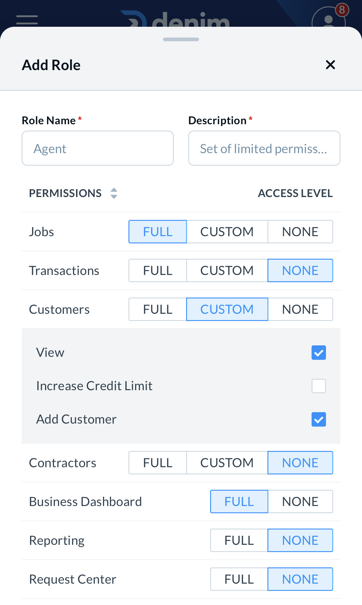 With Denim's Roles and Permissions feature, you can give anyone access to the Denim Portal, all while being able to control exactly what they can do and see.