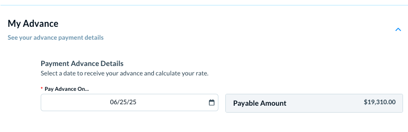 - The Pay advances on date, in My advances
