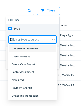 Select one or more request types such as Denim Cash Payout or Payment Change.