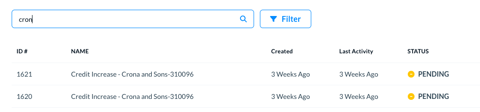 While looking at the list, you can search a specific request by their name or ID. When you start writing in the Search field, the list updates automatically. Here is an example for your quick reference.